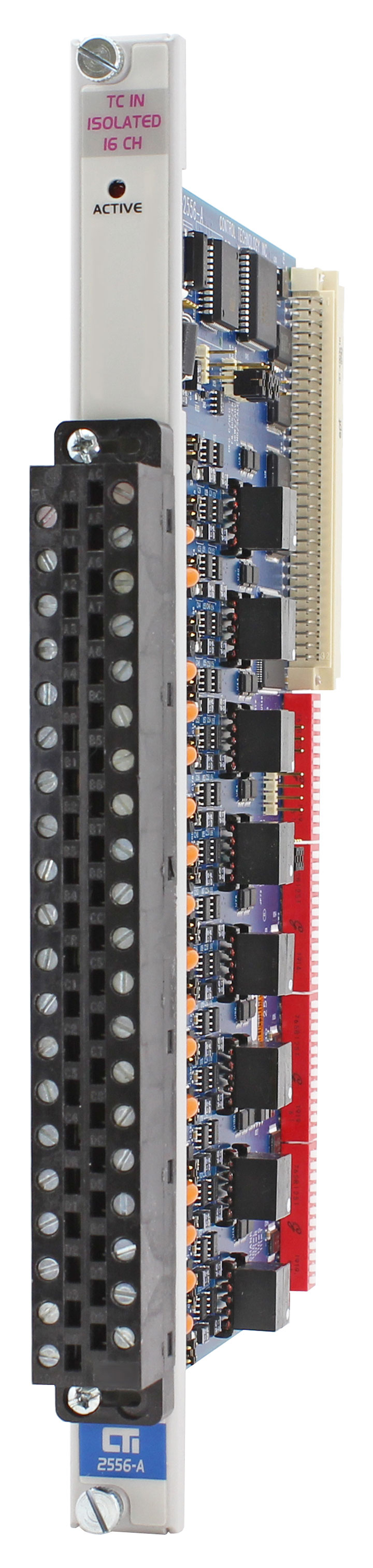 The 2556 is a high-speed 16-channel isolated thermocouple input module designed to be compatible with the 2500 Series® I/O base. The 2556 translates millivolt level signals from the thermocouple element into a scaled temperature value. Multiple thermocouple types are supported as well as millivolt inputs. IMPORTANT NOTE: 2556 HAS BEEN MATURED. IT IS REPLACED BY 2556-A, WHICH SHOULD BE USED ON ALL NEW DESIGNS.